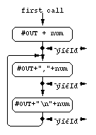 yield which returnd the control to the calling loop. The figure