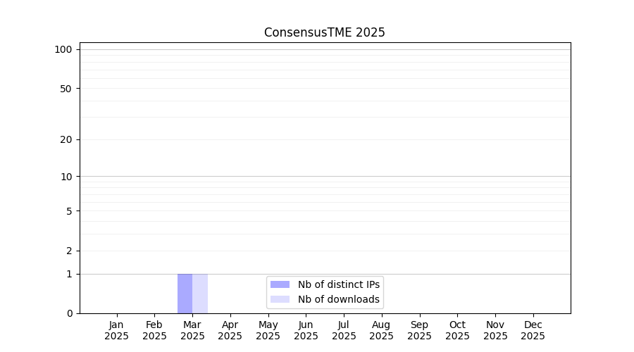 Number of downloads for software package ConsensusTME, year by year, from 2025 back to 2014 (years with no downloads are omitted):