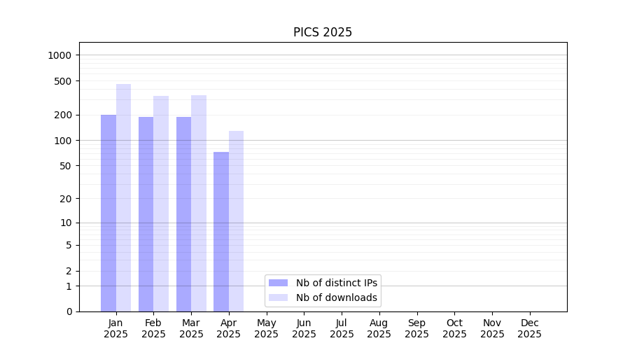 Number of downloads for software package PICS, year by year, from 2025 back to 2014 (years with no downloads are omitted):