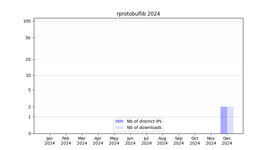 Number of downloads for software package rprotobuflib, year by year, from 2025 back to 2014 (years with no downloads are omitted):