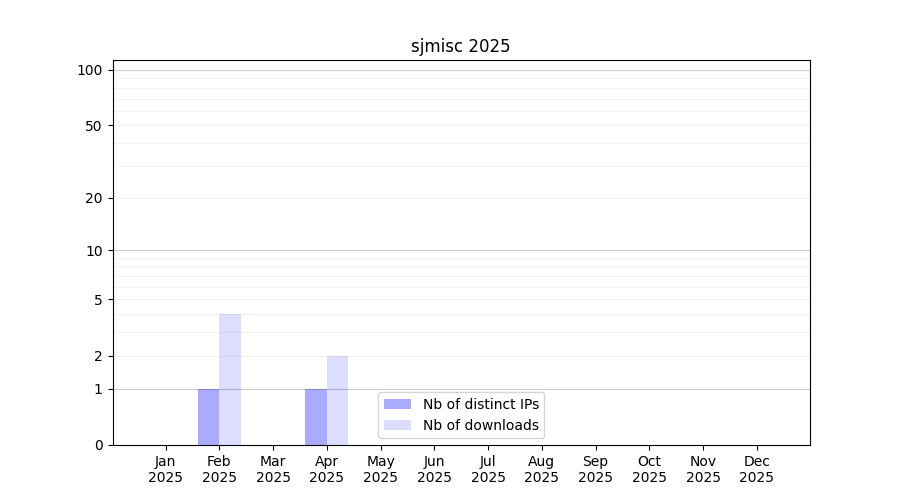 Number of downloads for software package sjmisc, year by year, from 2025 back to 2014 (years with no downloads are omitted):