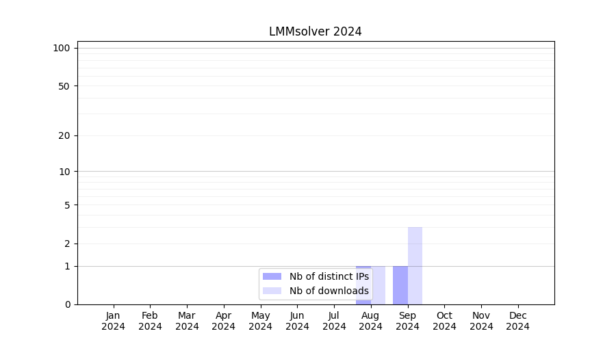 Number of downloads for workflow package LMMsolver, year by year, from 2025 back to 2015 (years with no downloads are omitted):
