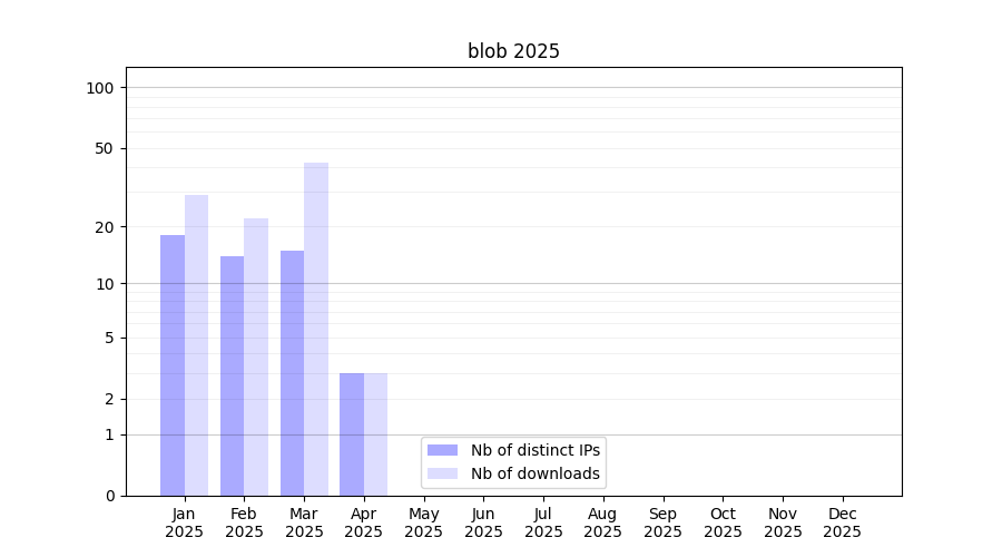 Number of downloads for workflow package blob, year by year, from 2025 back to 2015 (years with no downloads are omitted):