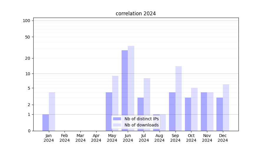 Number of downloads for workflow package correlation, year by year, from 2025 back to 2015 (years with no downloads are omitted):