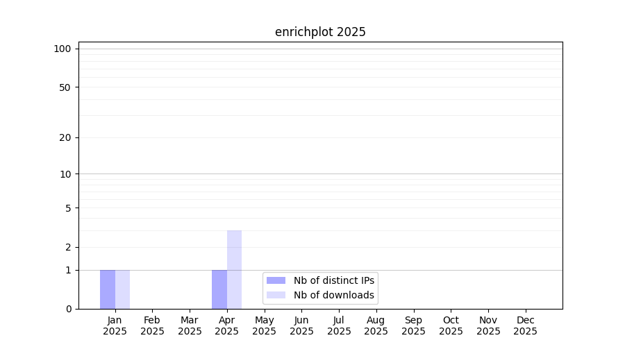Number of downloads for workflow package enrichplot, year by year, from 2025 back to 2015 (years with no downloads are omitted):