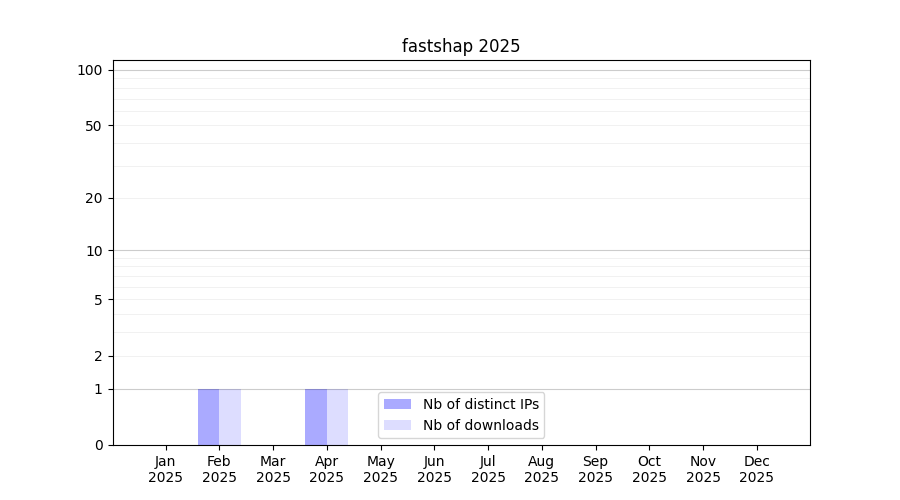 Number of downloads for workflow package fastshap, year by year, from 2025 back to 2015 (years with no downloads are omitted):