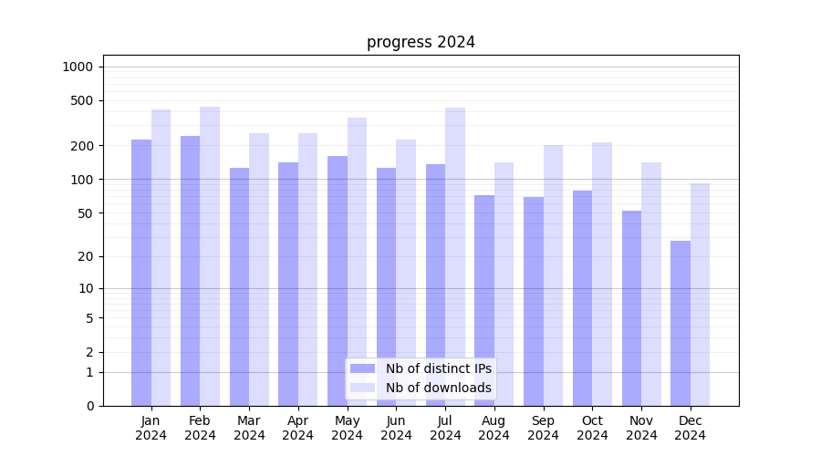 Number of downloads for workflow package progress, year by year, from 2025 back to 2015 (years with no downloads are omitted):