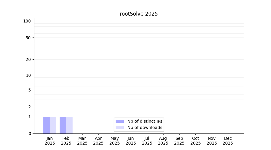 Number of downloads for workflow package rootSolve, year by year, from 2025 back to 2015 (years with no downloads are omitted):