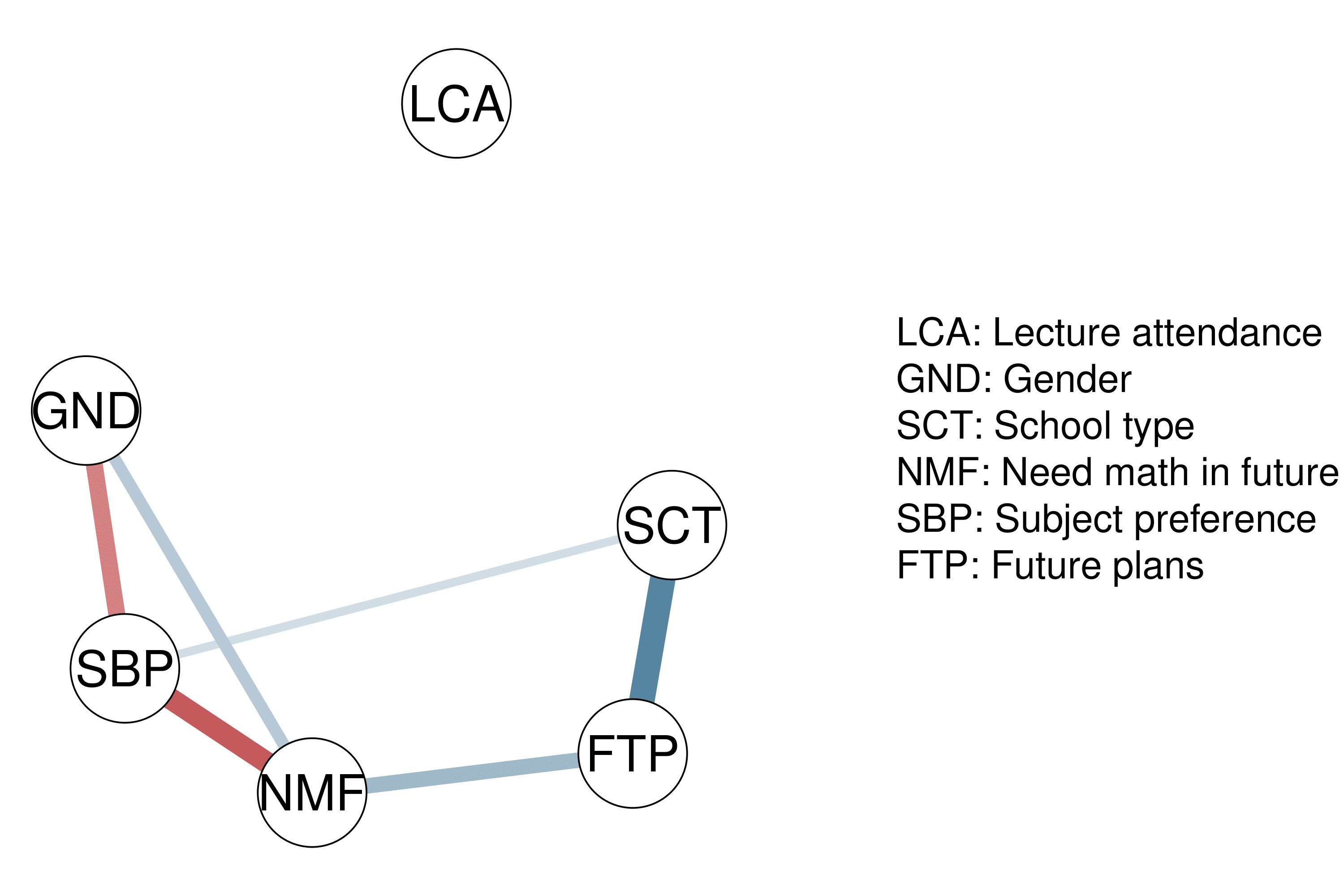 Epskamp, S., Cramer, A. O. J., Waldorp, L. J., Schmittmann, V. D., & Borsboom, D. (2012). qgraph: Network Visualizations of Relationships in Psychometric Data. Journal of Statistical Software, 48 . doi: 10.18637/jss.v048.i04