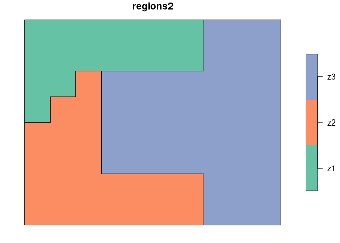 devtools::install_github("Nowosad/sabre")We use two simple regionalization, regions1 and