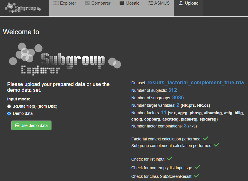 data. In this case, demo data can be selected in the ‘upload data’-tab.